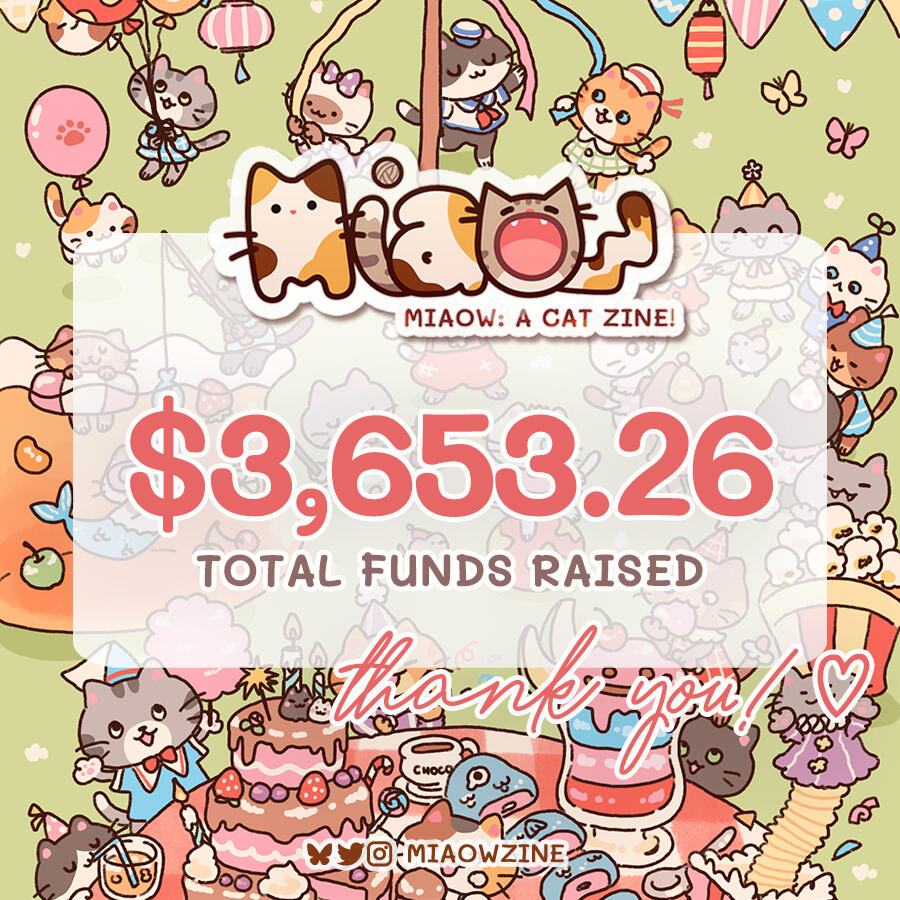 Miaow is a digital charity zine on all things cats!All orders have been sent as of Sep. 23, 2025! Please contact us if you did not receive your order. Remember to double check your spam or promotion folders~Together we raised $3398 for RAPS Cat Sanctuary in addition to $255 in direct donations to cat rescues across 5 countries around the world!Thank you for supporting miaow 💕